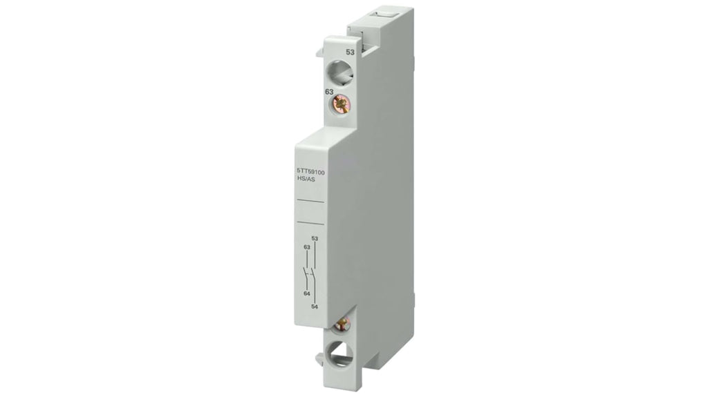 Contatto ausiliario Siemens per interruttore automatico miniaturizzato, 2 contatti, 1 N/C + 1 N/A, montaggio su guida DIN, tensione nominale 230 V c.a., peso netto 41 g, serie 5TT59, compatibile con la gamma SENTRON.