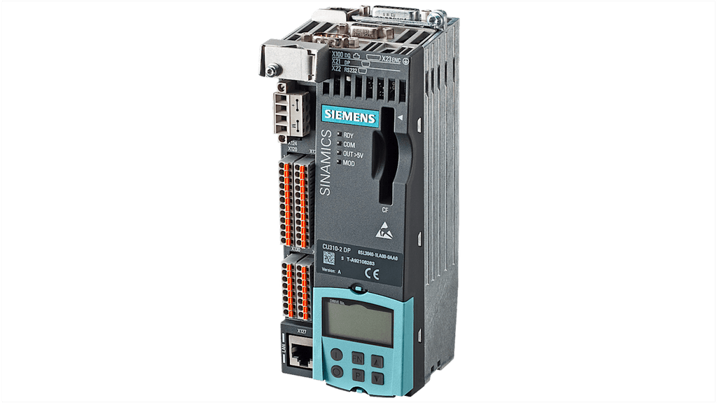 Controller Siemens per SIPLUS, serie SIPLUS S120 CU310-2 DP, interfaccia PROFIBUS, interfaccia PROFINET, temperatura d'esercizio da -20 a +55 gradi Celsius, perdita di potenza 20 W, grado di protezione IP20, dimensioni 191 x 73 x 75 mm, rivestimento conforme, senza scheda CompactFlash.