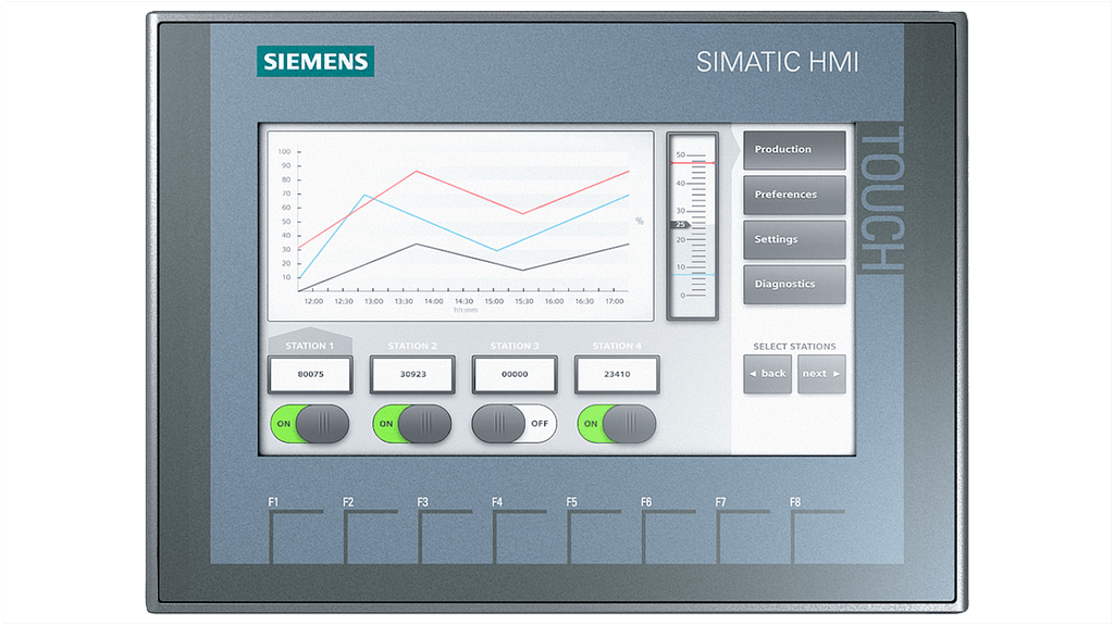 Pannello HMI Siemens, KTP700 Basic, 7 poll., serie SIPLUS, display LCD-TFT, risoluzione 800 x 480 pixels, interfaccia PROFIBUS, funzionamento a tasto/touch, display TFT a 65536 colori, configurabile con WinCC Basic V13/STEP 7 Basic V13, rivestimento conforme. Codice costruttore 6AG11232GA032AX0.