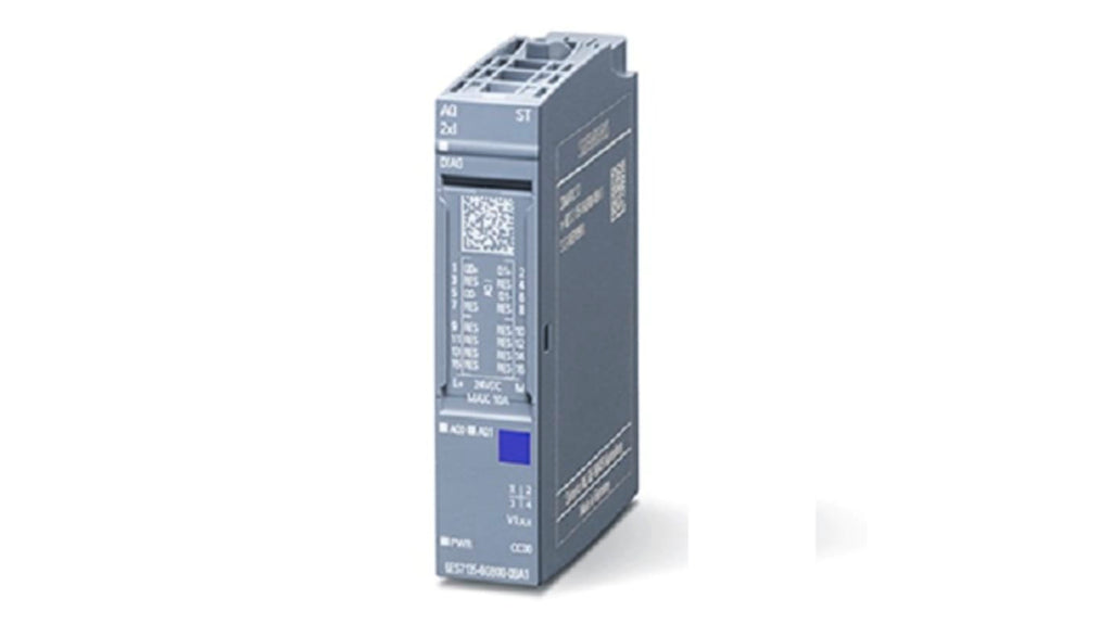Modulo di distribuzione di potenza Siemens, serie 6AG113, per ET 200SP, modulo uscita analogico AQ 2xI, 2 porte di uscita, tensione 24 V c.c., diagnostica del modulo, rivestimento conforme, funzione A, diagnostica di classe, dimensioni 73 x 15 x 58 mm, codice colore CC00.