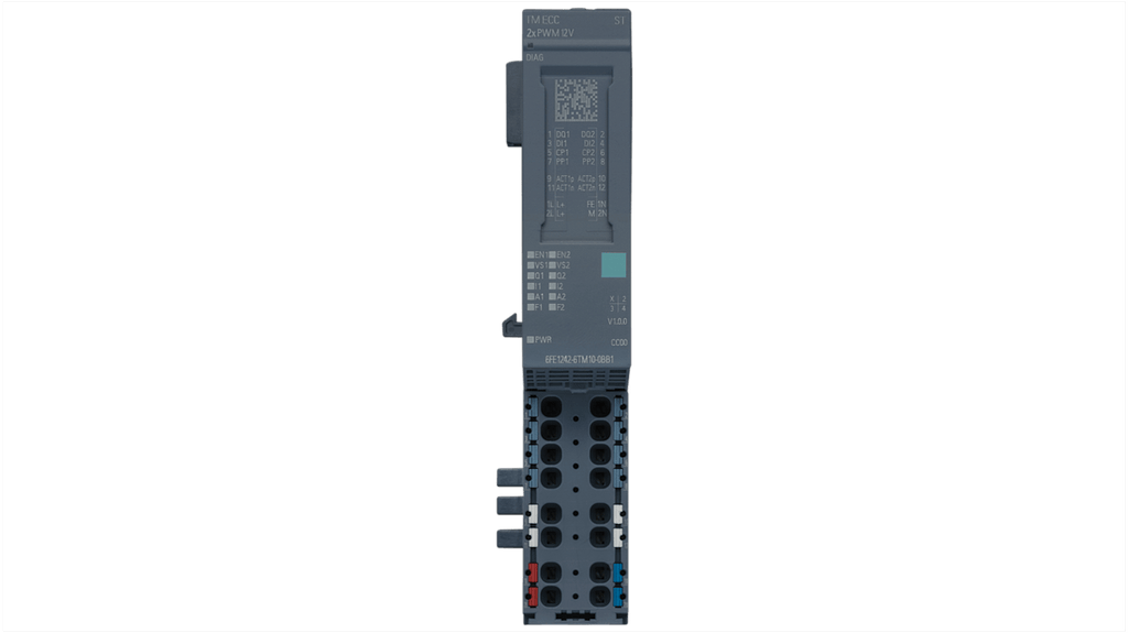 Modulo di comunicazione digitale per ET 200SP, Siemens, serie 6AG124. Codice costruttore 6AG12426TM102BB1. Tipo di ingresso e uscita digitale, dimensioni 73 x 20 x 58 mm. Protezione contro i cortocircuiti, range di temperatura max 70 gradi Celsius. Conforme a IEC61851, dotato di 2 prese di ricarica, 2 Control Pilot, 2 contatti di commutazione DQ, 2 DI e 2 ACT.