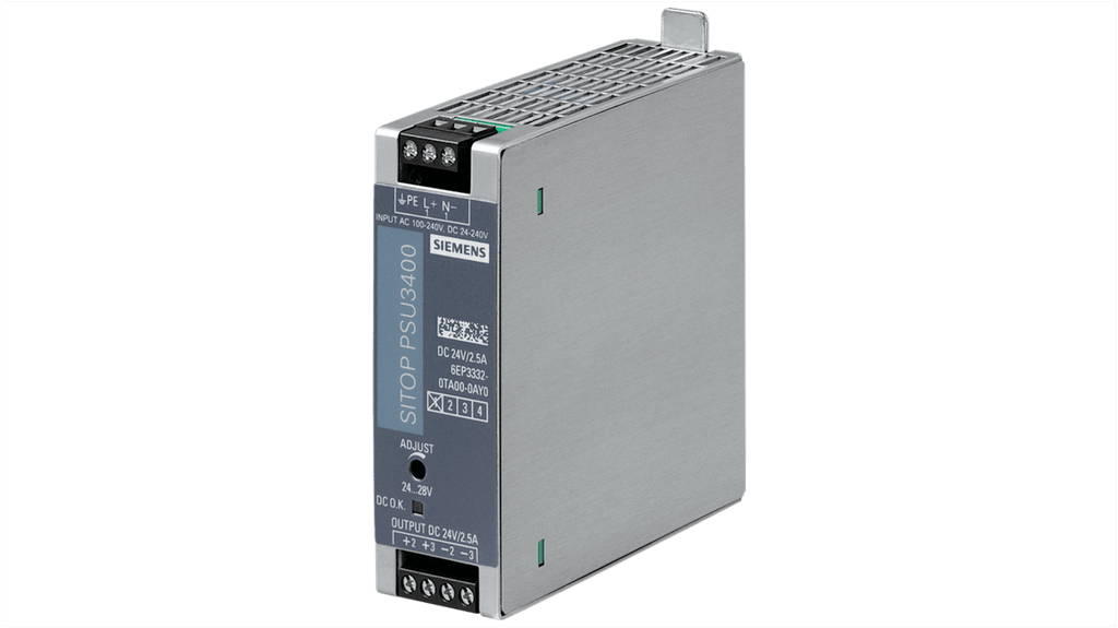 Alimentatore PLC Siemens, serie 6AG1332, codice 6AG1332-0TA00-7AY0. Tensione di alimentazione 24 V, rivestimento conformale per protezione da umidità, polvere e sostanze chimiche. Progettato per resistere a condizioni ambientali difficili. Tipo accessori: alimentatore PLC, range: SIPLUS.