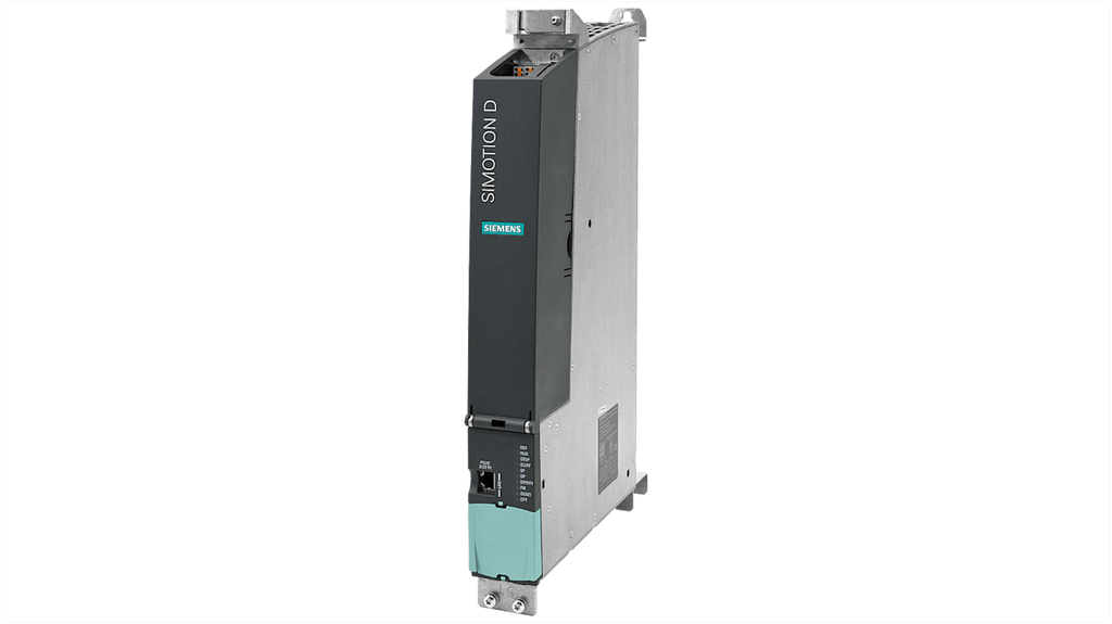 Controller programmabile per azionamento SIPLUS D435-2 DP/PN, dotato di rivestimento conforme, interfacce 12 DI, 16 DI/DQ, 6 DRIVE-CLiQ, 2 PROFIBUS, 3 PROFINET, 2 Ethernet, 2 USB, 1 slot opzionale. Include doppio modulo ventola/batteria e batteria, 109 Mbyte di RAM. Dimensioni 380 x 50 x 270 mm. Codice costruttore 6AG14352AD004AA0. Marchio Siemens.