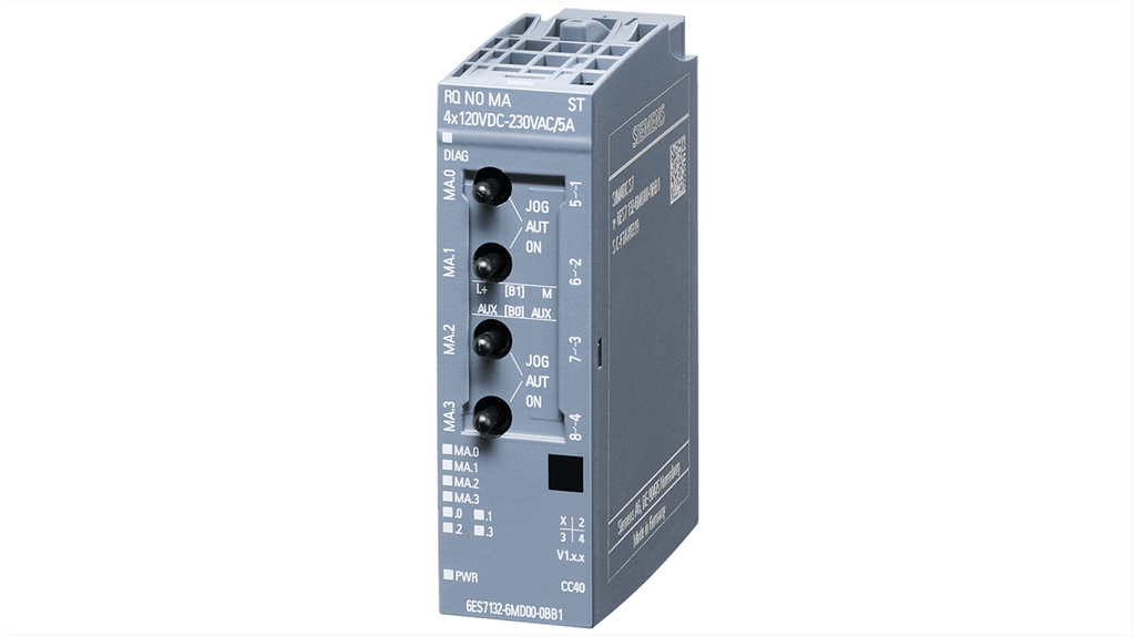 Modulo relè per ET 200SP, modello SIPLUS ET 200SP RQ 4x120/230 V MA TX di Siemens, normalmente aperto, esecuzione della funzione diagnostica, isolamento testato con 2545 V c.c., tipo uscita digitale, dimensioni 73 x 20 x 58 mm, codice costruttore 6AG21326MD004BB1.