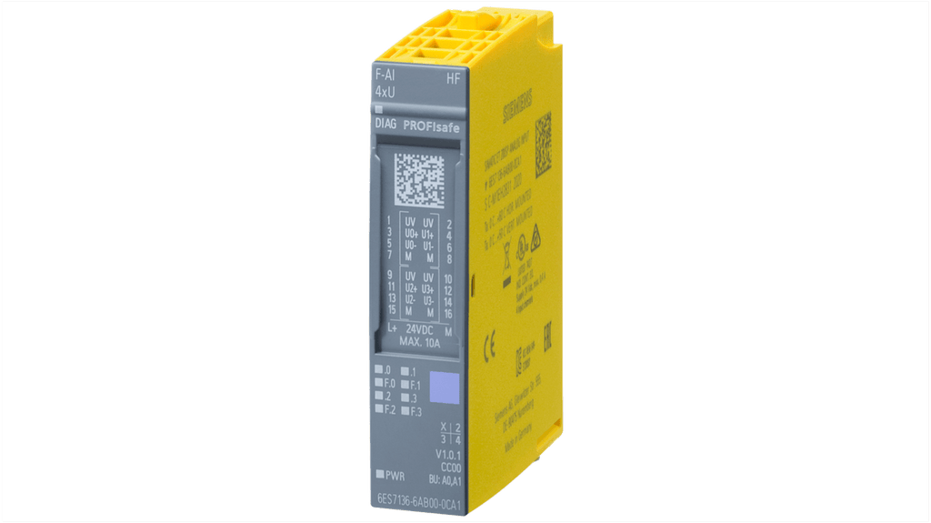 Modulo di ingresso analogico fail-safe per sistema di I/O distribuito Siemens SIMATIC ET 200SP, tensione di alimentazione da 0 a 10 V, intervallo di temperatura da -30 a +60 gradi Celsius, rivestimento conforme. Codice costruttore 6AG2136-6AB00-1CA1, serie 6AG2136, tipo accessori SIPLUS.