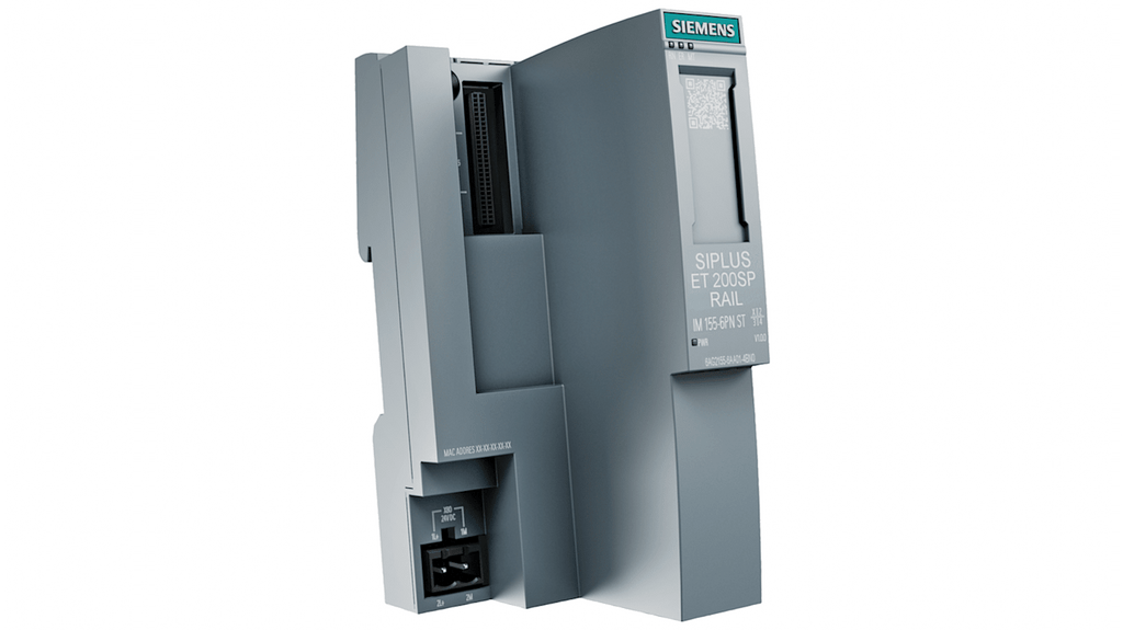 Modulo di interfaccia a 2 porte per ET 200SP, Siemens, modello SIPLUS ET 200SP IM155-6PN HF, 1 slot per adattatore bus, supporta max 64 moduli I/O e 16 moduli ET 200AL, ridondanza S2, hot swap multiplo, 0,25 ms, modalità isocrona, PROFINET 100 Mbit/s full duplex, funzione di diagnostica, fascetta di fissaggio PN opzionale, dimensioni 117 x 50 x 74 mm.