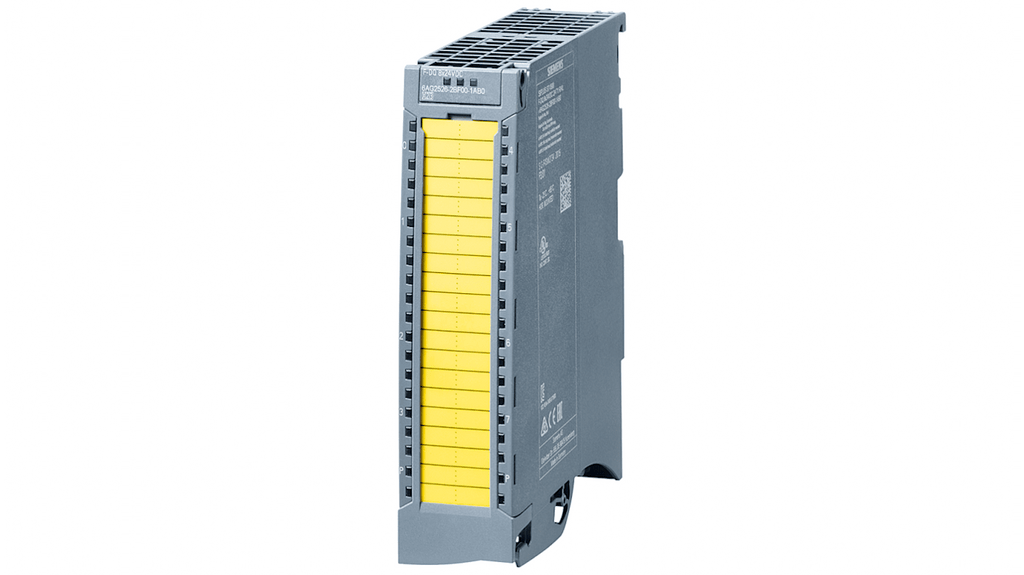 Modulo di uscita digitale Siemens, serie SIMATIC S7-1500 ET 200, con 8 uscite digitali a transistor, tensione 24VDC, corrente 2A per uscita. Funzionamento DQ, protezione contro l'inversione di polarità e cortocircuiti, diagnostica integrata. Dimensioni 147 x 35 x 129 mm, progettato per BINARIO SIPLUS Extreme. Codice costruttore 6AG2526-2BF00-1AB0.