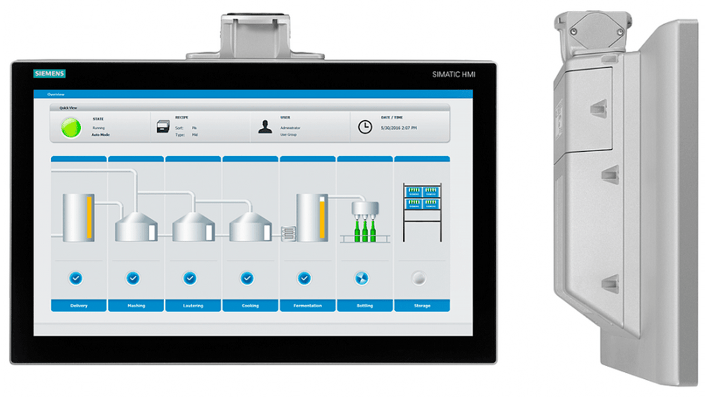 Pannello HMI Siemens, TP1900 Comfort PRO, 18,5 poll., serie SIMATIC, display TFT, risoluzione 1366 x 768 pixels, 16 milioni di colori, operazioni touch, robusto contenitore in alluminio, interfaccia PROFINET, MPI, PROFIBUS DP, memoria di configurazione 24 MB, progettato per ambienti operativi difficili ed estremi.