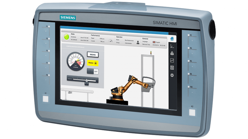 Pannello HMI Siemens, KTP900 Mobile, 9 e, serie SIMATIC. Display TFT, risoluzione 800 x 480 pixels, rapporto 16:9, 16 milioni di colori. Area display maggiore del 40%, interfaccia PROFINET/Industrial Ethernet. Configurabile tramite WinCC Comfort V13 SP1. Adattabile a diversi ambienti, regolabile al 100%.