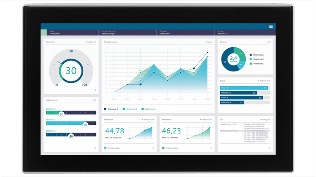 Pannello HMI Siemens, Comfort unificato MTP1900, display TFT widescreen da 18,5 pollici, risoluzione 1920 x 1080 pixel, interfaccia PROFINET, configurabile con WinCC Unified Comfort V18, software open-source fornito gratuitamente, frontale neutro, compatibile con braccio di supporto espandibile. Codice costruttore 6AV2128-3UB57-0BX0.