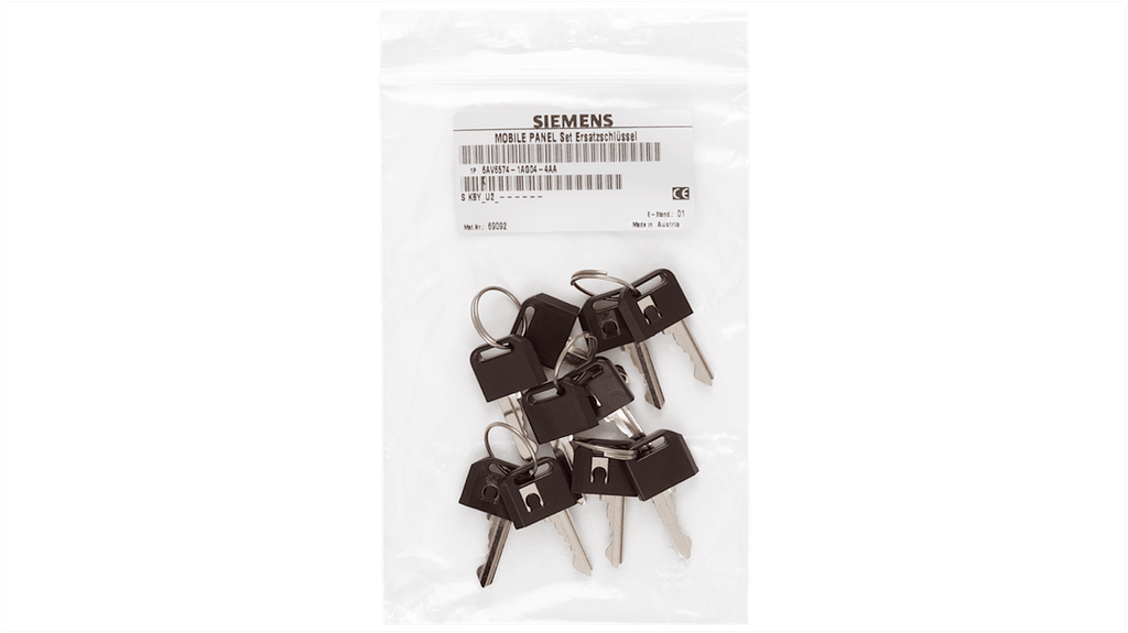 Chiave per interruttore a chiave per SIMATIC HMI. Codice costruttore 6AV65741AG044AA0, marchio Siemens. Chiave di ricambio per pannello mobile di 1 generazione, impugnatura in plastica. Accessorio specifico per uso con SIMATIC.
