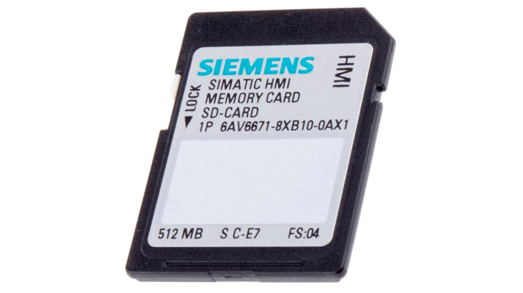 Scheda di memoria per HMI Siemens, compatibile con pannelli mobili 177, 277, 377, OP77B, OP/TP 177B, OP/TP 277, C7-635, MP177/277/377. Dimensioni variabili, adatta per slot SD o MMC. Progettata per interfaccia HMI SIMATIC. Tipo accessori: scheda di memoria. Codice costruttore: 6AV6671-8XB10-0AX1. Marchio: Siemens.