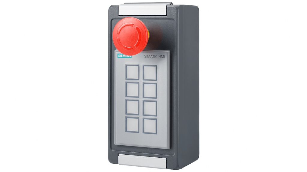 Pulsante di arresto di emergenza Siemens SIMATIC, diametro foro 22.5 mm, colore rosso, forma rotonda, materiale della cornice in alluminio, grado di protezione IP65, adatto per installazione di interruttori KP8 e KP8F. Codice costruttore 6AV68812AM122AA0.