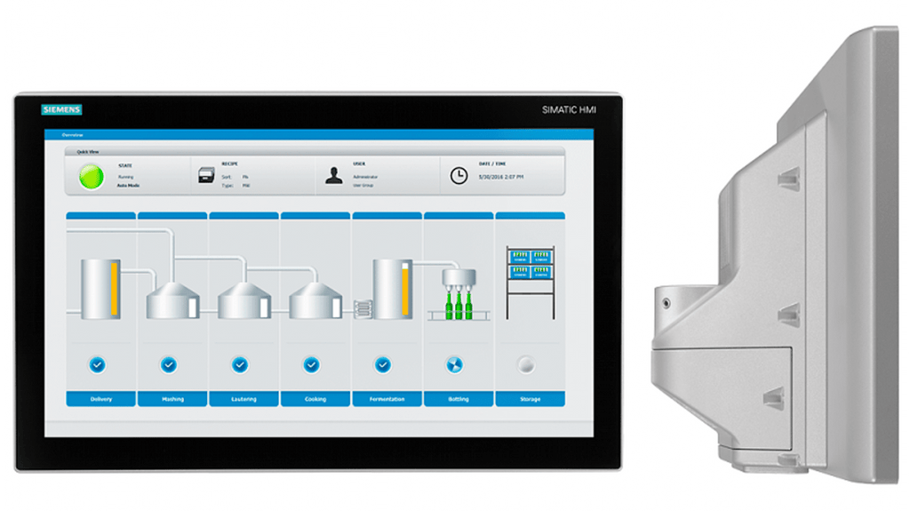 Pannello piatto multitouch Siemens, IFP2200 PRO ETH, 22 poll, display TFT Full HD 1920 x 1080 pixels, grado di protezione IP65, montaggio VESA, interfaccia Ethernet e DisplayPort V1.1, preparato per braccio di supporto e elementi di espansione, completamente chiuso.