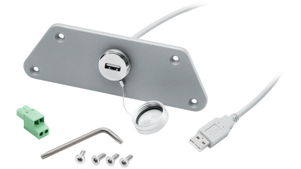 Interruttore USB a 1 porta per HMI. Connettore femmina USB 2.0 tipo A, compatibile con dispositivi Siemens PRO. Include materiale di montaggio per adattatore di base. Conformità RoHS. Specifiche: tipo accessori, interfaccia USB, per uso con HMI, dispositivi Siemens PRO. Codice costruttore 6AV76740LX000AA0.