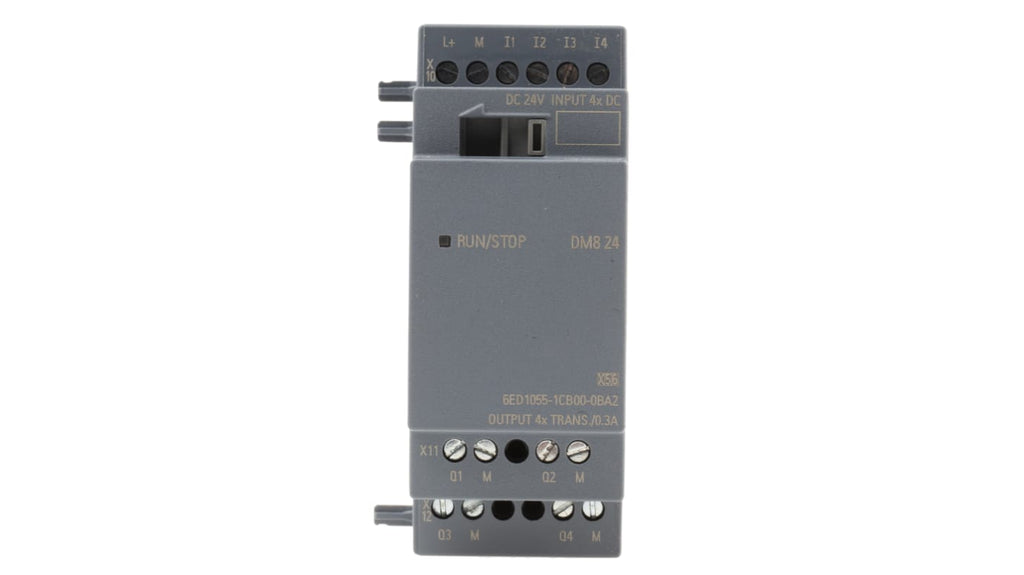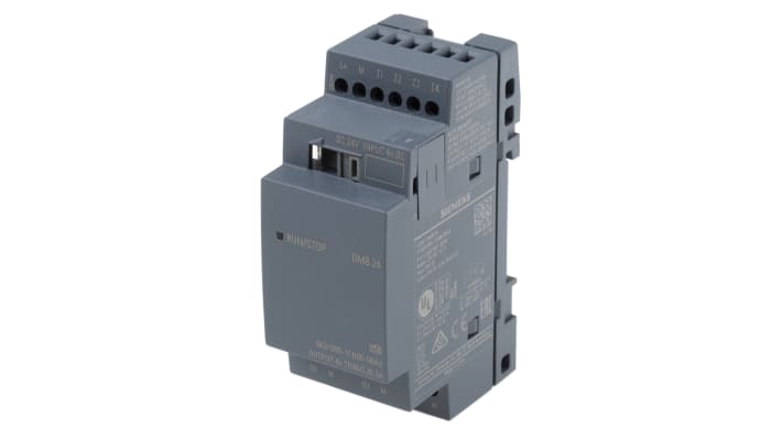 Modulo I/O Siemens LOGO!, 4 ingressi digitali, 4 uscite digitali, tensione di alimentazione 24 V c.c., montaggio su guida DIN, dimensioni 90 x 35,5 x 58 mm, grado di protezione IP20, temperatura operativa da -40 a +70 gradi Celsius, certificazioni CE, CSA, UL. Protezione incorporata contro cortocircuiti, terminazione a vite per collegamenti sicuri.