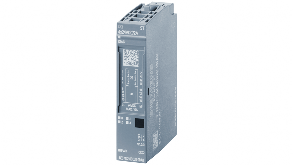 Modulo di uscita digitale per sistema I/O SIMATIC. Dimensioni 15 x 73 x 58 mm, 4 uscite digitali, corrente di uscita 2 A, tensione di alimentazione 24 V, compatibile con STEP 7 TIA Portal. Massima temperatura operativa +60°C. Utilizzabile in applicazioni industriali per il controllo di uscite digitali.