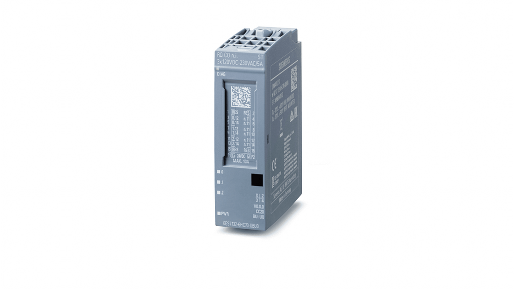 Modulo di uscita digitale Siemens, serie 6ES7132, per sistema I/O SIMATIC, dimensioni 15 x 73 x 58 mm, tensione di alimentazione 230 V, corrente di uscita 5 A, 3 uscite digitali, compatibile con dati SIMATIC I&M, separazione di potenziale totale tra canali e bus, codifica automatica con elementi meccanici, massima temperatura operativa +60°C, ideale per impianti di automazione ad alto traffico.