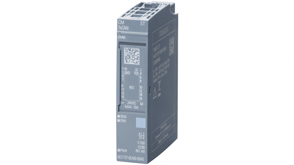 Modulo di comunicazione Siemens, serie 6ES713, per Sistema I/O SIMATIC, dimensioni 15 x 73 x 58 mm, modulo CANopen, compatibile con SIMATIC S7-1200 e S7-1500, interfaccia isolata 500V AC o 707V DC, intervallo di tensione operativa 19,2V a 28,8V, massima temperatura operativa +60°C, progettato per ambienti industriali difficili.