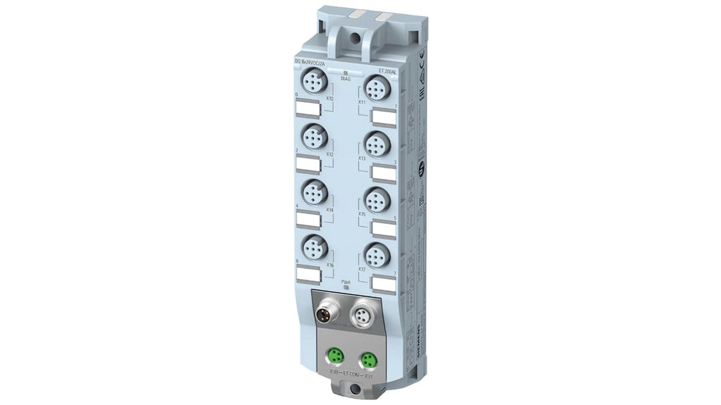 Modulo I/O PLC Siemens, codice 6ES7142-5AF00-0BA0, con 8 uscite digitali, corrente di uscita 4 A, tensione 24 V c.c., grado di protezione IP65/67, dimensioni 159 x 45 x 40 mm. Prodotto della serie SIMATIC ET 200AL, progettato per applicazioni industriali.