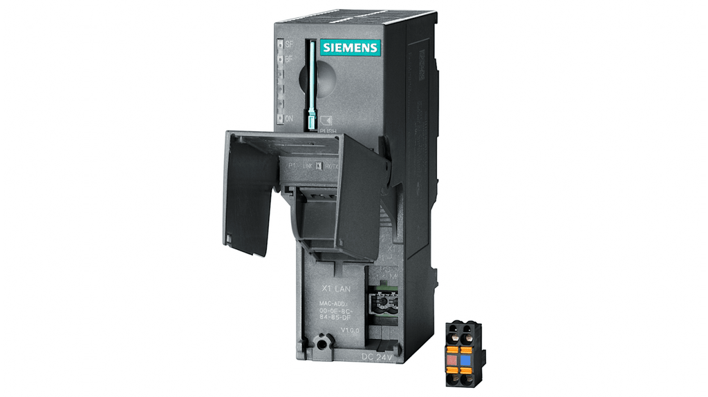 Modulo I/O PLC Siemens, tensione nominale 24 V c.c., connettività Profinet, supporta fino a 12 moduli I/O, montaggio su guida DIN, dimensioni 125 x 40 x 118 mm, corrente di uscita 1,5 A, massima temperatura operativa +60°C, perdita di potenza 6 W, 2 porte RJ45 integrate. Richiede scheda di memoria per funzionamento. Codice costruttore 6ES7153-4AA01-0XB0.