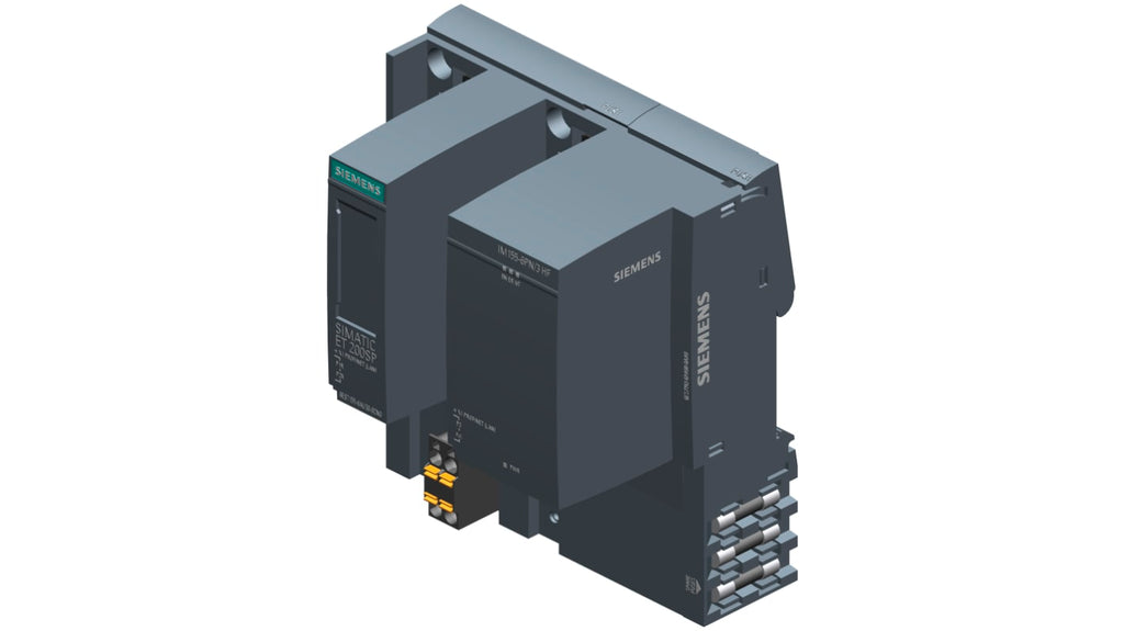 Modulo d'interfaccia per PROFINET, Siemens SIMATIC ET 200SP, 3 porte, 64 moduli periferici supportati, 16 moduli 200AL ET, ridondanza S2, multi hot swapping, modalità isocrona 0,25 ms, testato per isolamento 707 V c.c., dimensioni 117 x 100 x 74 mm.