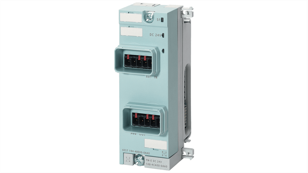 Zoccolo relè per modulo di alimentazione. Modulo di collegamento DP Sematic Siemens, compatibile con modulo di alimentazione PM-o ET 200 PRO, 2x push-pull. Dimensioni 45mm x 130mm x 60mm, peso 110g. Tipo accessori, modulo di collegamento, range SIMATIC DP, per uso con modulo di alimentazione. Codice costruttore 6ES7194-4BH00-0AA0. Marchio Siemens.