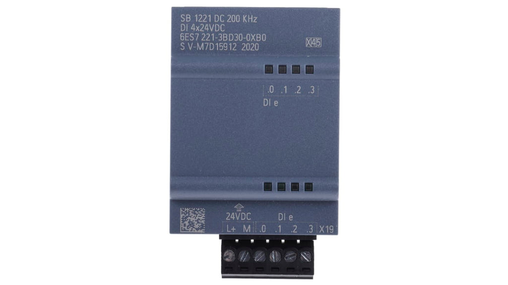 Modulo di espansione PLC Siemens, digitale, per Serie S7-1200, 4 ingressi, tensione di alimentazione 24 V, corrente di ingresso 40 mA, peso 35 g, dimensioni 62 x 38 x 21 mm, temperatura operativa da -20 a +60 gradi Celsius, contenitore in plastica, indicatori a LED, bassa perdita di potenza 1 W, compatibile con alimentatore switching per guida DIN. Codice costruttore 6ES7221-3BD30-0XB0.