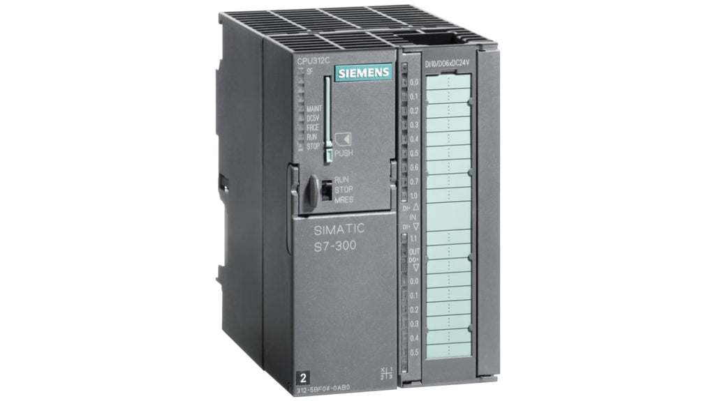 CPU PLC Siemens per SIMATIC S7-300, 10 ingressi digitali, 6 uscite digitali, tensione 24 V c.c., dimensioni 125 x 80 x 130 mm, montaggio su guida DIN, interfaccia di programmazione SIMATIC PG/PC, linguaggi di programmazione FBD, GRAPH, HiGraph, LAD, STL, memoria 8 MB (carico), 64 KB (integrato), corrente di uscita 500 mA, temperatura operativa da 0 a 60 gradi Celsius, codice costruttore 6ES7312-5BF04-0AB0.