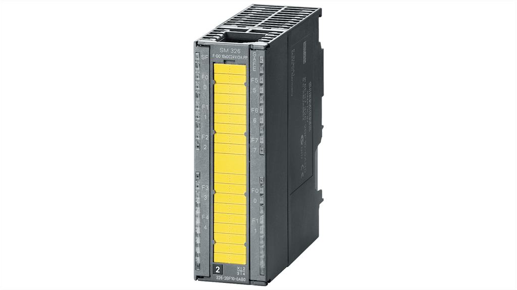 Modulo I/O PLC Siemens per Sistemi SIMATIC S7F, tensione nominale 24 V CC, 10 uscite digitali, corrente di uscita fino a 10 A, lunghezza cavo schermato 1000 m, dimensioni 40 x 125 x 120 mm, peso 330 g, installazione orizzontale o verticale, protezione contro cortocircuiti, isolamento tra alimentazioni, allarme diagnostico. Codice costruttore 6ES7326-2BF10-0AB0.