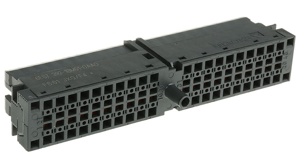 Zoccolo relè per Modulo di ingresso analogico SIMATIC S7-300 SM 331. Connettori da pannello frontali S7-300, interconnessione veloce ai PLC e moduli d'espansione, connettori a 20 pin e 40 pin codificati per evitare collegamenti errati, meccanismo di tenuta per prevenire scollegamenti. Compatibile con software S7-300 e moduli accessori. Codice costruttore 6ES7392-1BM01-0AA0. Marchio Siemens.