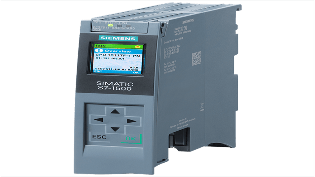 CPU PLC Siemens SIMATIC S7-1500T, unità di elaborazione centrale, memoria di lavoro 450 KB, memoria dati 1,5 MB, interfaccia PROFINET IRT con switch a 2 porte, prestazioni in bit 25 ns, tensione di alimentazione 24 V, limite inferiore 19,2 V, limite superiore 28,8 V, stato funzionale HW FS01.