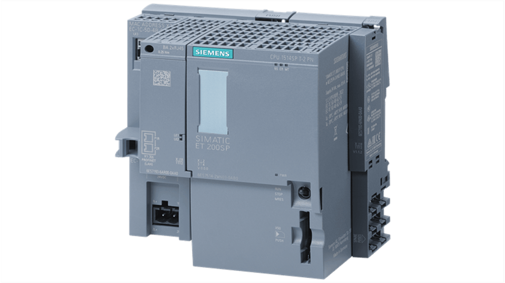 Unità di elaborazione centrale Siemens SIMATIC DP, CPU 1514SP F-2 PN per ET 200SP, memoria di lavoro 900KB, memoria dati 3,5MB, 1a interfaccia PROFINET IRT con switch a 2 porte, 2a interfaccia PROFINET RT, prestazioni in bit 6 ns, hot swapping, tensione di alimentazione 24 V, campo ammesso 19,2 V - 28,8 V, protezione da inversione di polarità.
