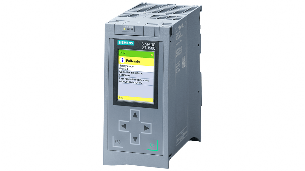 CPU PLC Siemens per SIMATIC S7-1500, 20 ingressi e 20 uscite, tensione 24 V c.c., interfacce PROFINET ed Ethernet, velocità di elaborazione 30 ns, temperatura operativa da -40 a +70 gradi, dimensioni 70 x 129 x 147 mm, memoria nativa 3 MB, capacità programma 750 kB, supporta linguaggi FBD, GRAPH, logica della scala, SCL, STL, codice costruttore 6ES7515-2UM01-0AB0.