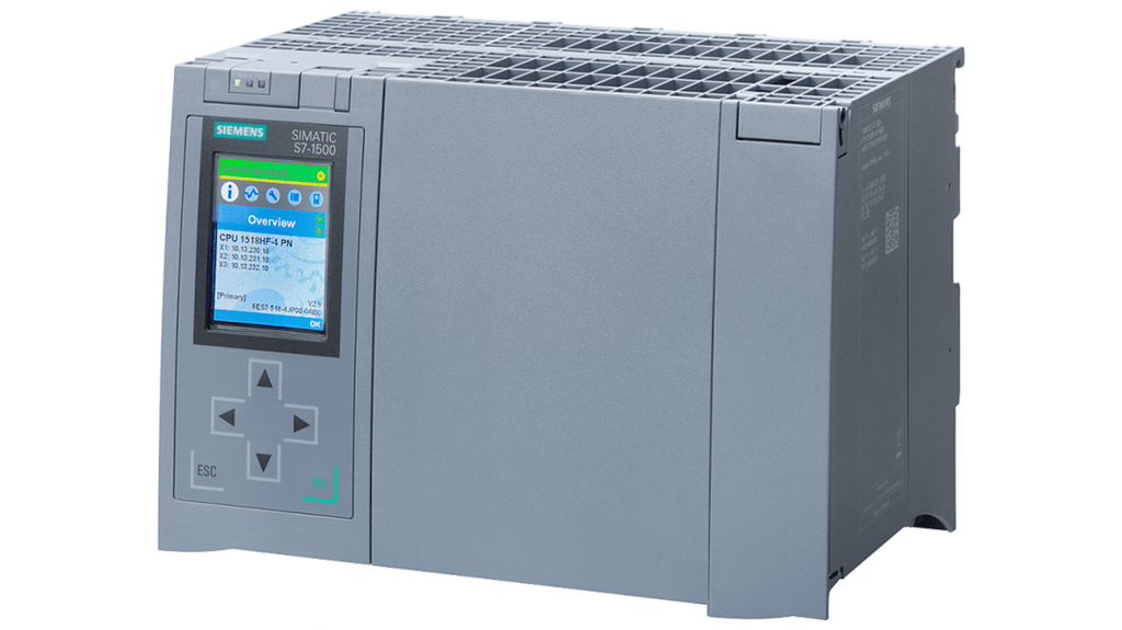 CPU PLC Siemens, serie SIMATIC S7-1500H, tensione 24 V c.c., capacità massima 200 moduli I/O, velocità di trasferimento 1000 Mbps, memoria programma 9 MB, memoria dati 60 MB, dimensioni 210 x 147 x 129 mm, temperatura operativa da -40 a +70 gradi Celsius, interfacce Ethernet e PROFINET, supporta linguaggi di programmazione FBD, GRAPH, LAD, SCL, STL, indicatori LED per monitoraggio stato. Codice costruttore 6ES7518-4JP00-0AB0.