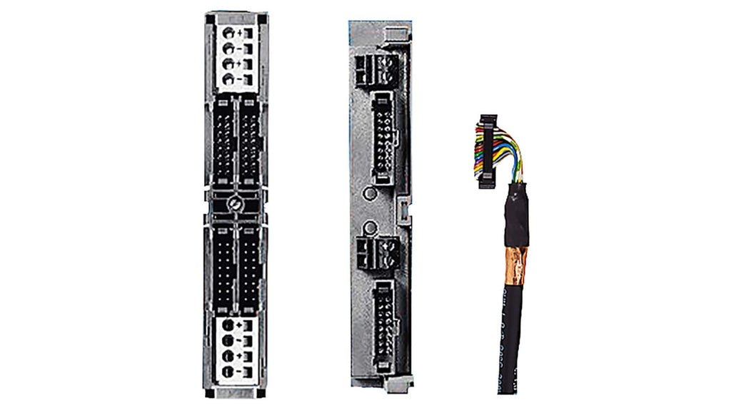 Modulo connettore anteriore per 32 moduli i/o digitali, compatibile con SIMATIC S7-300, collegamento tramite cavo a nastro piatto, alimentatore su terminali a molla, collegamento plug-in per cavo di collegamento, temperatura d'esercizio da 0 a 60 gradi Celsius. Codice costruttore 6ES7921-3AA20-0AA0, marchio Siemens.