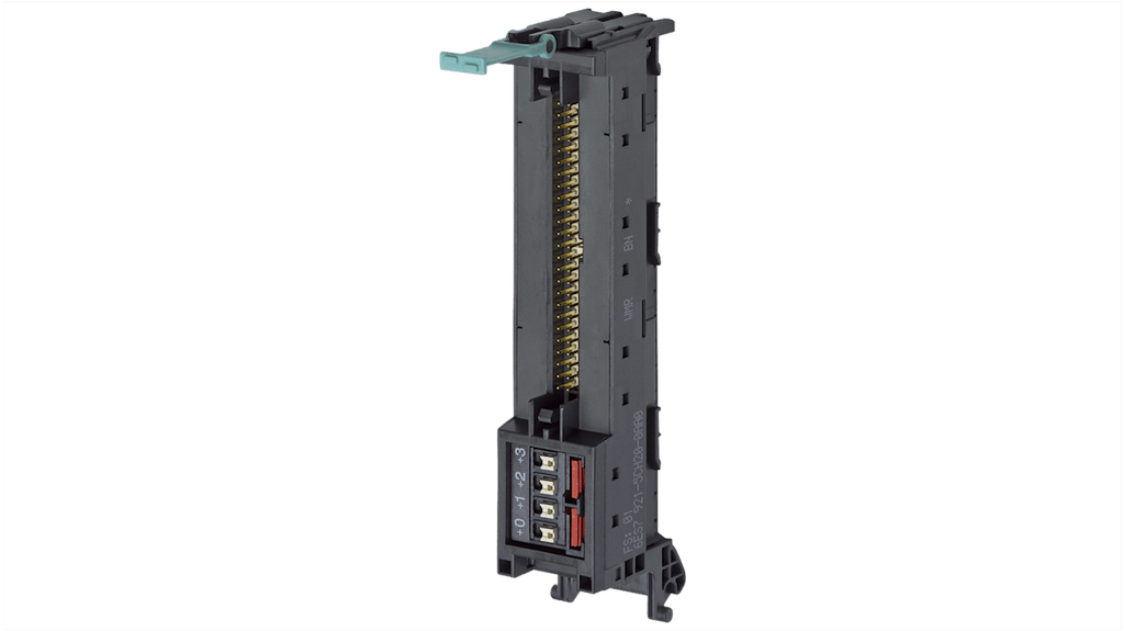 Connettore anteriore per moduli I/O digitali, serie 6ES7921, Siemens. Modulo di connessione frontale con connettore IDC a 1x50 poli, progettato per moduli digitali a 32 IO, terminali a innesto per alimentazione, tensione di alimentazione 24 V, omologato cULus, connessione completamente modulare.