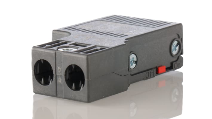 Connettore bus Siemens per Cavo bus PROFIBUS, 12 Mbps, uscita a 90 gradi, tipo D-sub a 9 pin, meccanismo di bloccaggio a vite, serracavo per protezione, contenitore in plastica resistente, temperatura operativa da -25 a +60 gradi, dimensioni 1,4 x 0,62 x 2,3 pollici, progettato per applicazioni di automazione industriale. Codice costruttore 6ES7972-0BA52-0XA0.