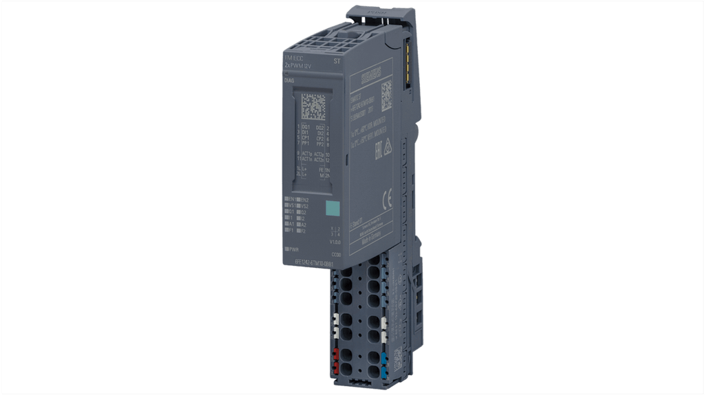 Modulo di espansione digitale per ET 200SP. Modello SIMATIC ET 200SP TM ECC 2xPWM ST, dotato di 2 contatti di commutazione DQ, 2 contatti di lettura DI, 2 contatti ACT. Grado di protezione IP20. Certificato CE, RCM, EAC, UL, KC. Dimensioni 73 x 20 x 58 mm. Codice costruttore 6FE12426TM100BB1. Marchio Siemens.