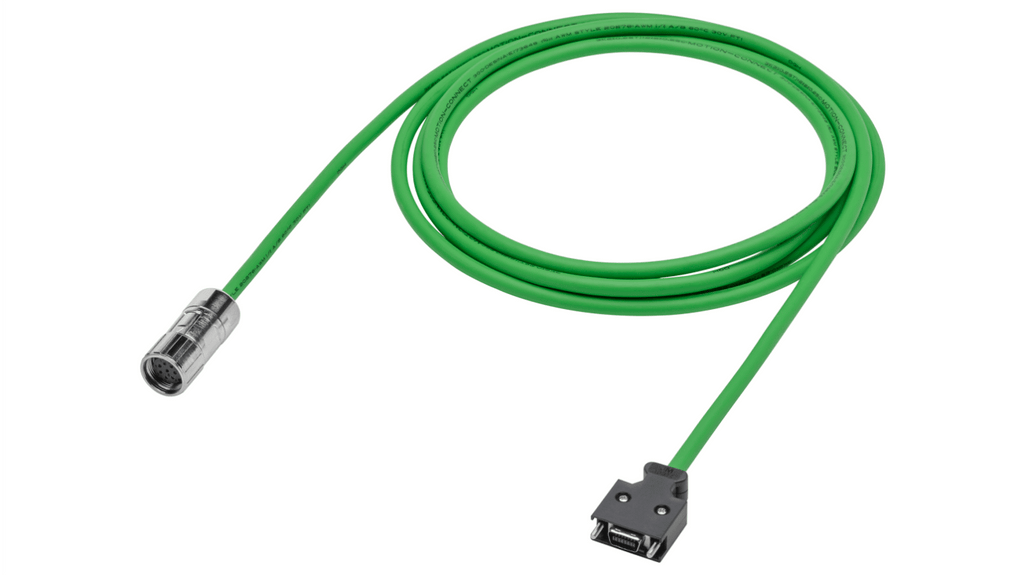 Cavo di segnale Siemens per uso con SINAMICS V90, lunghezza 10m, tensione di prova 500V, progettato per encoder incrementale TTL S-1, connettore diritto, tensione di trazione massima 50N/mm² per installazione fissa, 20N/mm² per installazione flessibile. Codice costruttore 6FX3002-2CT12-1BA0.