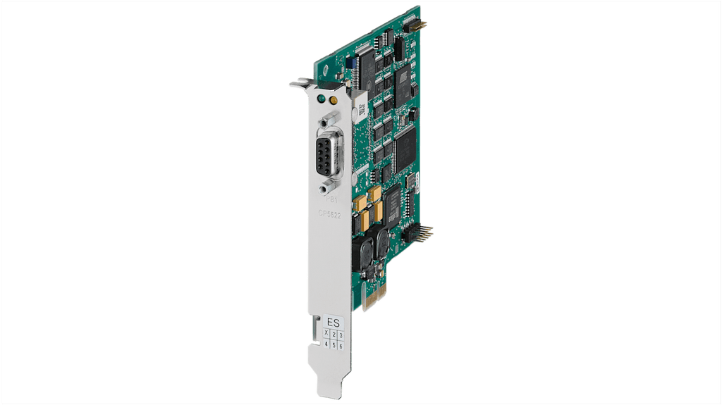 Modulo di comunicazione Siemens per Bus PCIe a PROFIBUS o MPI, scheda CP 5622 PCI express X1, compatibile con sistemi operativi a 32 bit e 64 bit, velocità di trasferimento PROFIBUS da 9,6 kbit/s a 12 Mbit/s, connettore femmina Sub-D a 9 pin (RS 485), dimensioni 3,98 x 0,71 x 4,22 poll. Codice costruttore 6GK1562-2AA00.