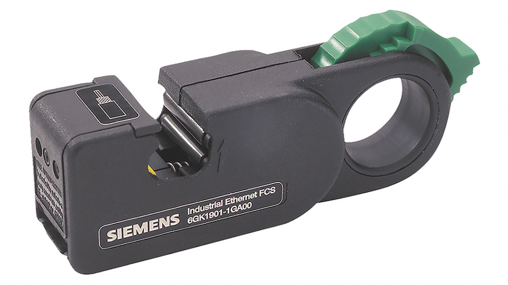 Terminale a lama Siemens, accessorio di ricambio per spelafili, confezione da 5, serie SIMATIC NET, codice 6GK19011GB00. Dimensioni 157 x 90 x 27 mm, peso 92 g. Tipo accessori: cassetta sostitutiva. Utilizzabile con spelafili per cavi Ethernet, progettato per applicazioni industriali. Contenitore in plastica durevole, separazione di 5,1 mm tra le lame per tagli precisi.