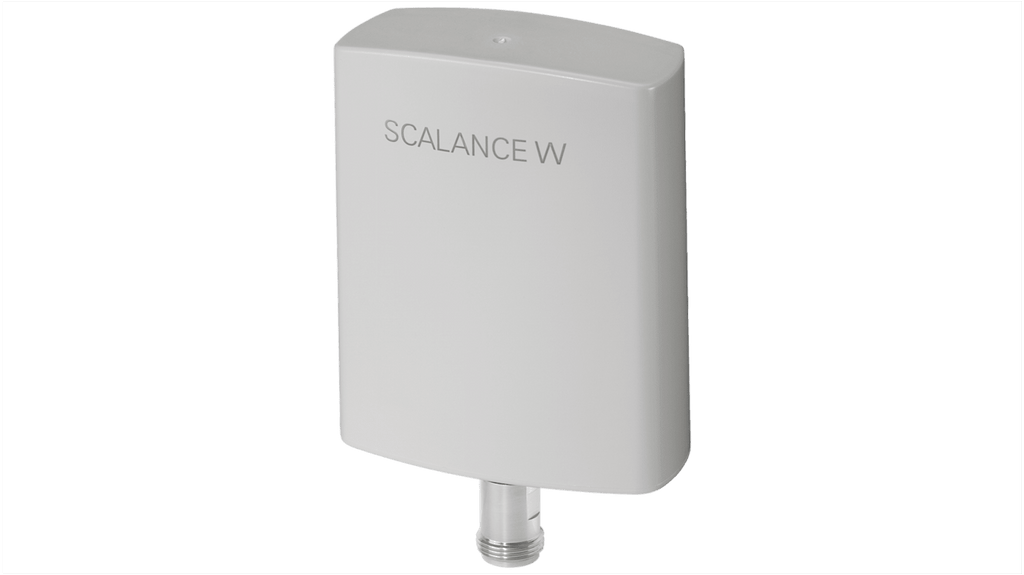 Antenna wireless direzionale IWLAN Siemens ANT793-8DP, connettore maschio femmina N, grado di protezione IP66/67, temperatura operativa da -40 a +80 gradi Celsius, frequenza d'esercizio 4,9 GHz a 5,35 GHz, polarizzazione verticale lineare, montaggio a parete o su asta, dimensioni 3,98 x 3,15 x 1,38 pollici, conformità Wi-Fi e omologazioni nazionali.