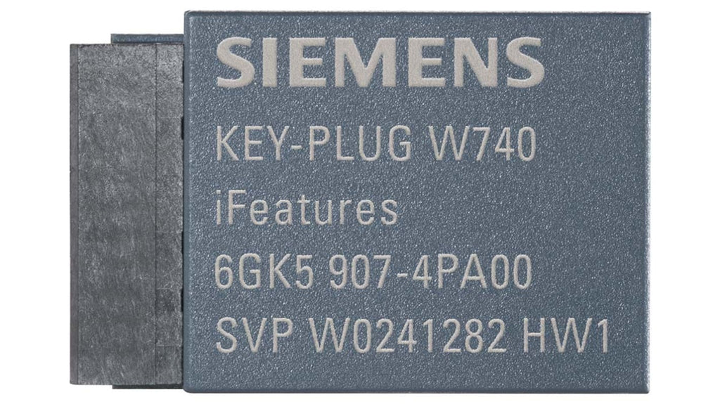 Connettore maschio Siemens per sblocco delle funzioni di SCALANCE W in modalità client, codice costruttore 6GK5907-4PA00. Tipo accessori: spina a chiave, classe di protezione IP20. Utilizzato per attivazione modalità client IPCF, IPCF MC e iPRP. Compatibile con SCALANCE.
