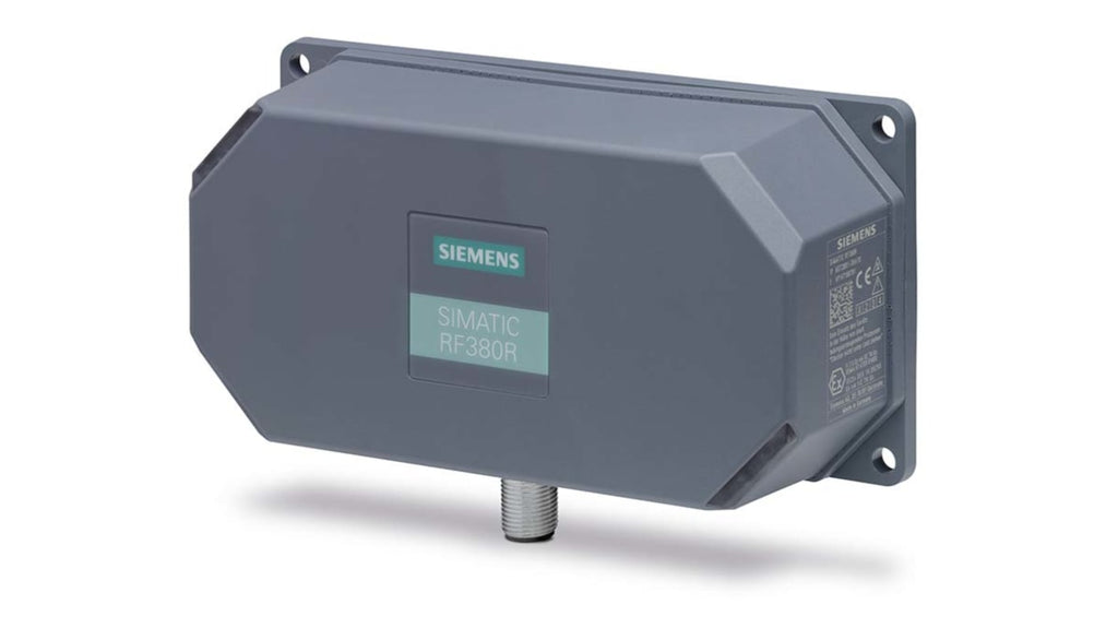 Lettore RFID Siemens SIMATIC RF300, interfaccia RF380R, protocollo di comunicazione RS 422/232, antenna integrata, gamma di rilevamento 200 mm, classe di protezione IP67, temperatura d'esercizio da -25 a 70 gradi Celsius, dimensioni 160 x 80 x 41 mm. Codice costruttore 6GT2801-3BA10.