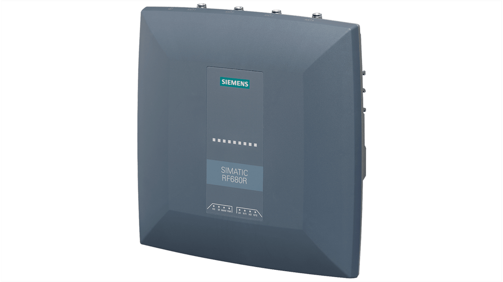 Lettore RFID fisso Siemens 6GT2811-6AA10-1AA0, distanza di lettura 8000 mm, alimentazione 24 V CC, corrente massima 2 A, interfacce Ethernet M12 e PROFINET M12, supporto per 4 antenne, 4 ingressi e 4 uscite digitali, grado di protezione IP65, resistenza agli urti, privo di silicone, capacità multitag.
