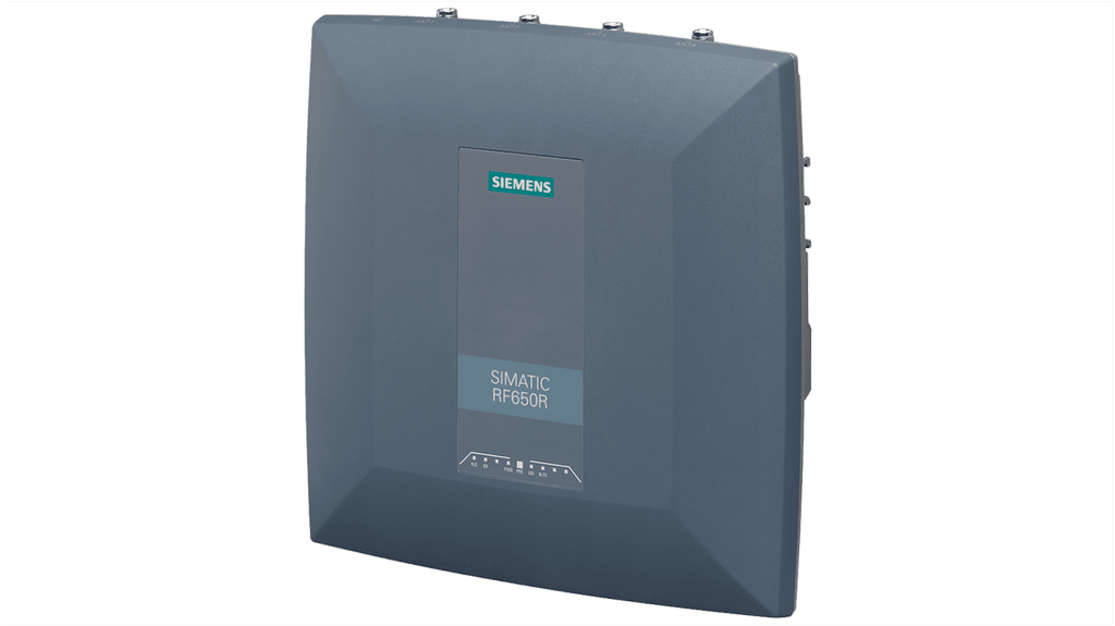 Lettore RFID fisso Siemens, modello 6GT2811-6AB20-4AA0, distanza di lettura 4000 mm, alimentazione 24 V CC, corrente massima 2 A, interfaccia di connessione RJ45, supporto per 4 antenne, 4 ingressi e 4 uscite digitali, grado di protezione IP30, privo di silicone, resistenza agli urti, capacità multitag.