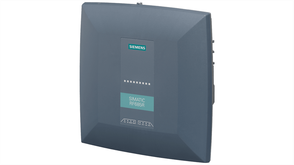 Lettore RFID fisso per applicazioni industriali, tensione di alimentazione 24 V, corrente massima 2 A, distanza di lettura 8000 mm. Connessione tramite 2 interfacce M12 a 4 pin e M12 a 8 pin. Dotato di antenna integrata, porta per antenna esterna, 4 ingressi e 4 uscite digitali. Grado di protezione IP65, resistente agli urti, privo di silicone, capacità multitag. Codice costruttore 6GT2811-6CA10-2AA0, marchio Siemens.