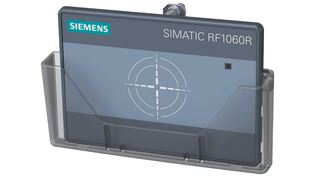 Lettore RFID per controllo accessi, Siemens, modello SIMATIC RF1000 RF1060R, gamma di rilevamento 30 mm, temperatura operativa da -25 a +55 gradi, grado di protezione IP20 e IP65, dimensioni 90 x 71,5 x 62 mm, antenna integrata, cavo di collegamento da 1,8 m, tipo di connessione wireless.