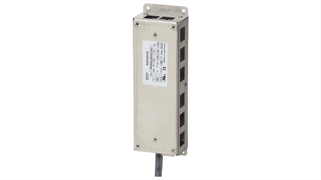 Resistore di frenatura Siemens, corrente nominale 2,5 A, resistenza 15 ohm, lunghezza cavo 0,55 m, grado di protezione IP20, codice costruttore 6SE6400-4BC05-0AA0.